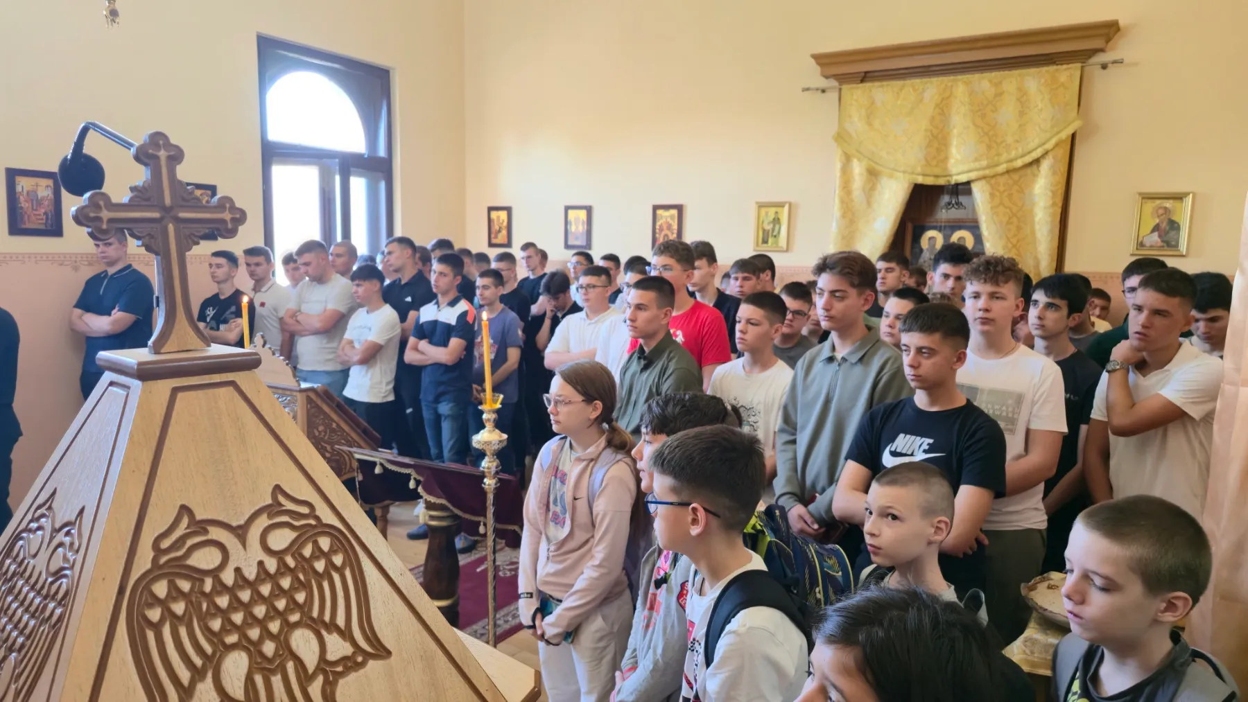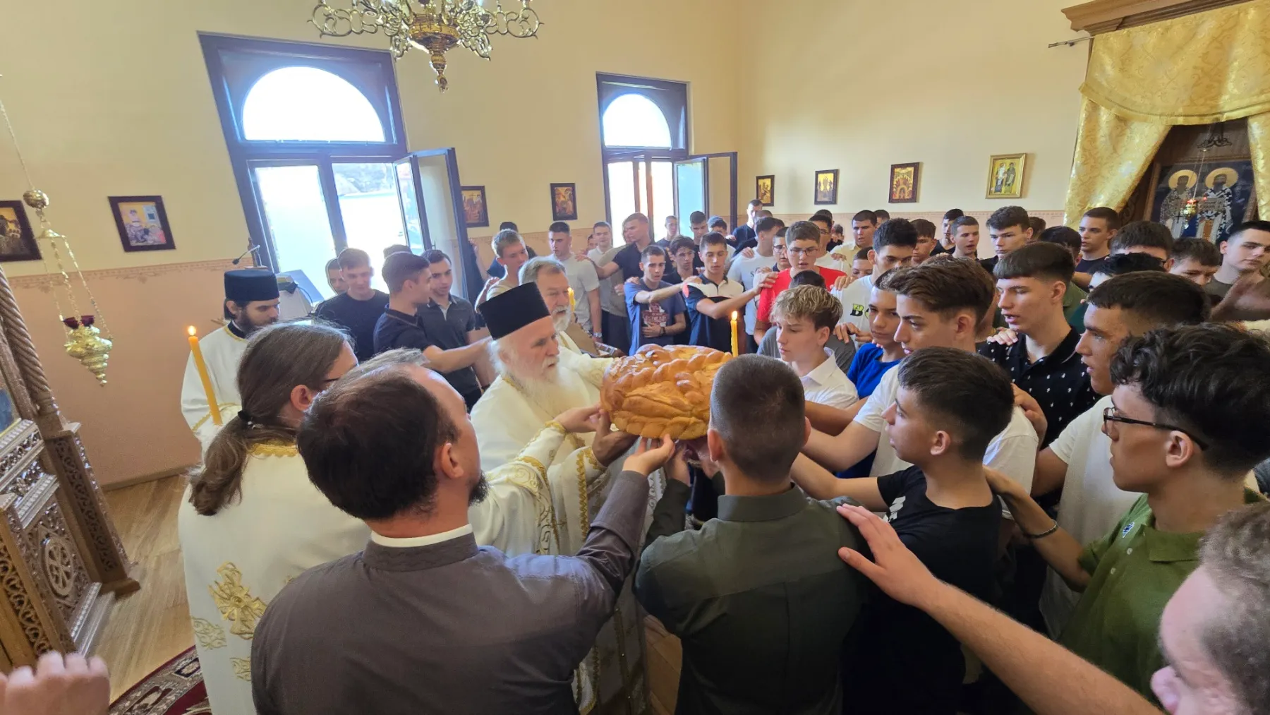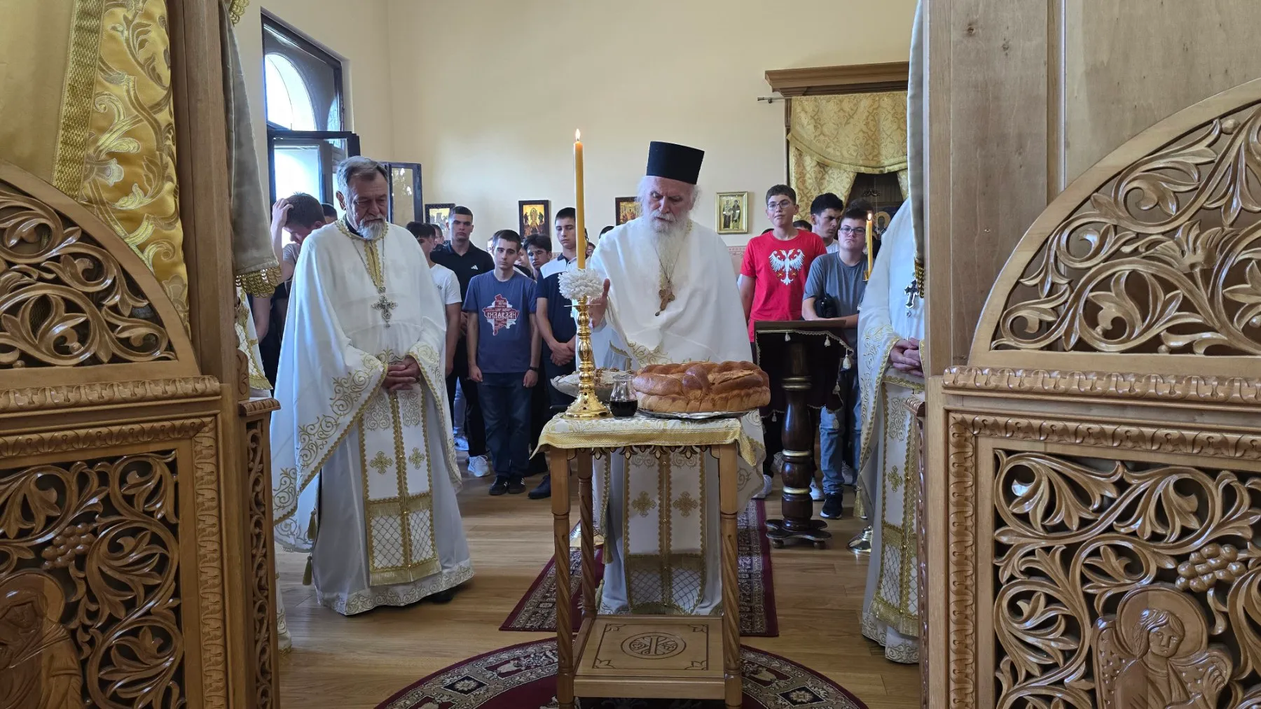 На Светој Литургији освећени су славски дарови у част и спомен Светог Рафаила. Свети Рафаило прославља се као слава школских секција: дуборезачке, иконописачке, медијске, као и секције веб дизајна. Од ове школске године иконописачка секција добила је новог руководиоца који ће нашим ученицима држати часове калиграфије. Молитвама Светог Рафаила Господ да благослови дело руку наших ђака.