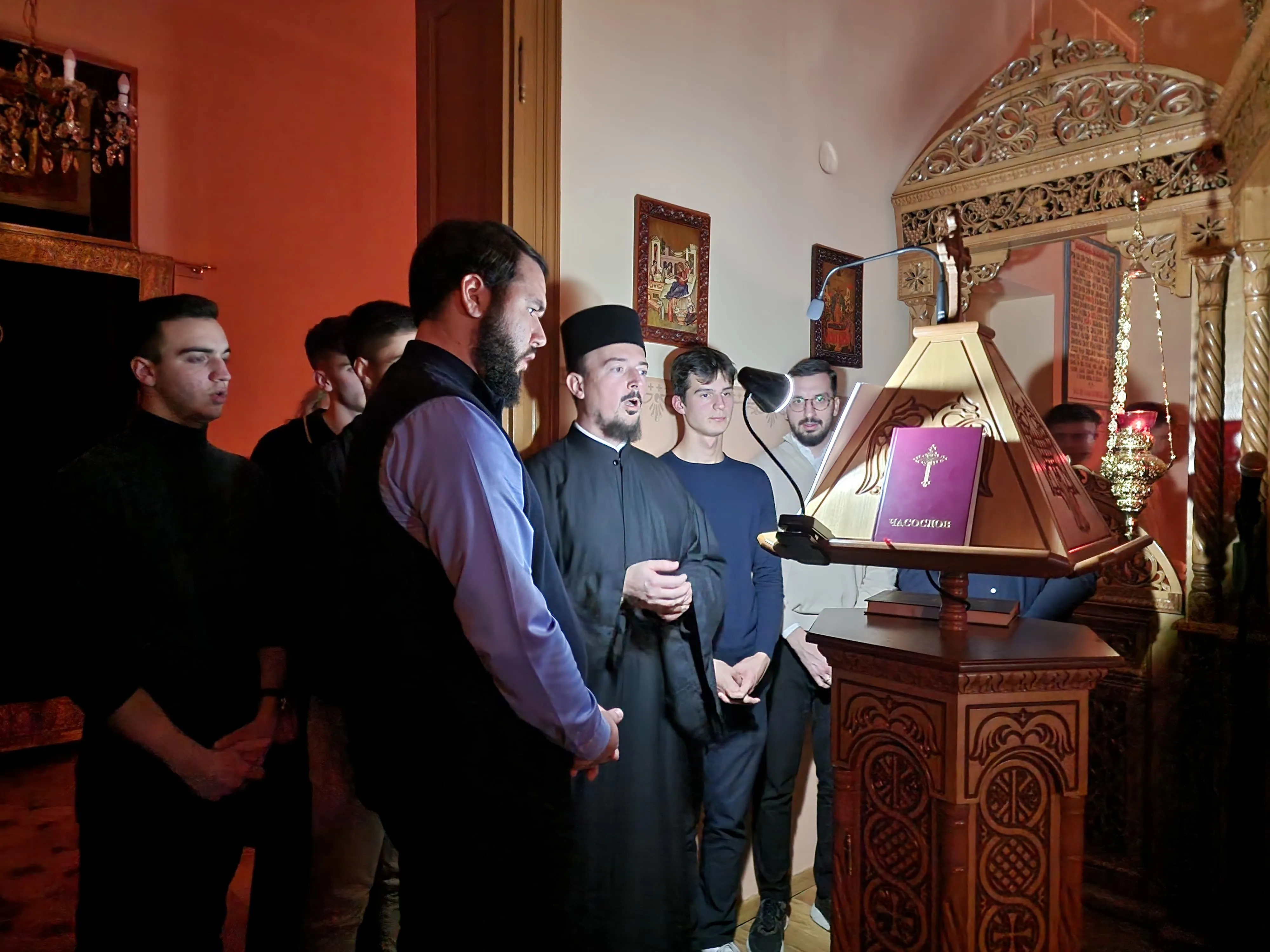 Светом Литургијом је такође началствовао крстоносни прота Јован, уз саслужење презвитера Станка Лакетића и јерођакона Сергија Јуришића, професора наше Богословије. Служба је протекла у духу молитвене радости и благодарности Богу, а по Светој Литургији благословено је кољиво и славски колач у част Светога Саве, Светога Арсенија и Светога Максима, као знак сећања на њихов подвиг и духовно наслеђе.